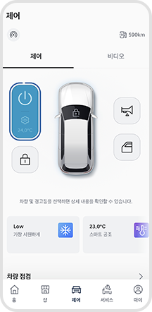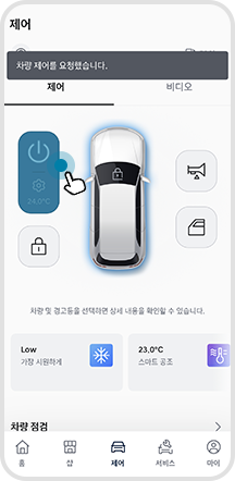 원격으로 차량 시동(공조)를 켜거나 끌 수 있습니다.